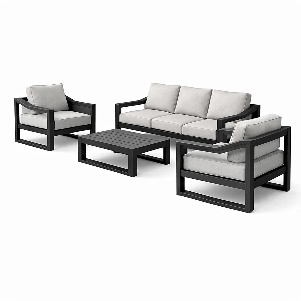 Sofa-set aluminium schwarz mit grauen kissen